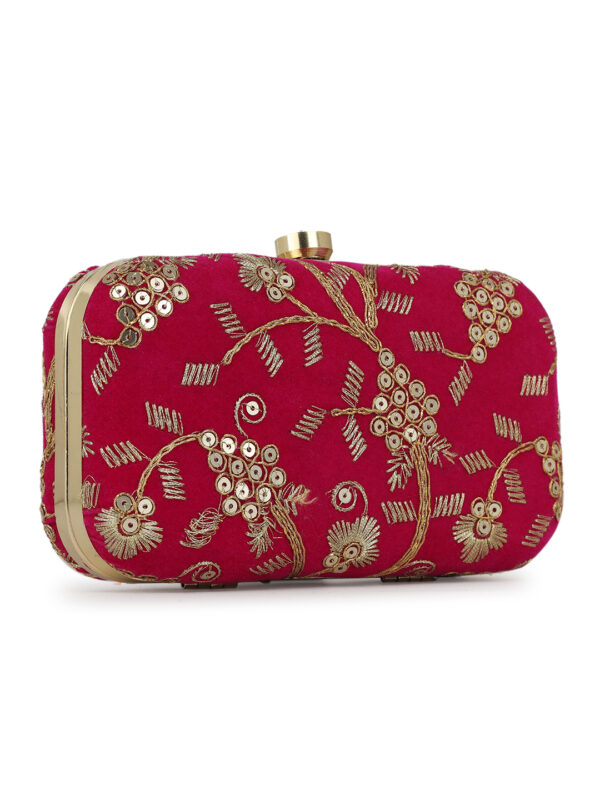 Pink & Gold Embroidered Box Clutches For Girls and womens