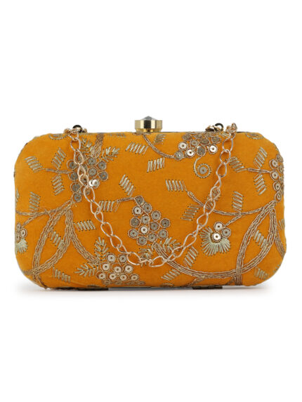 Beigeembroidered box clutches Has shoulder strap, 1 main compartment with twist closure