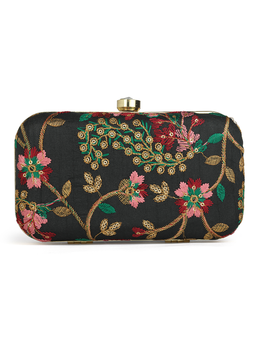 Home W_Bags Clutches Black & Red Embroidered Box Clutches For Girls and womens