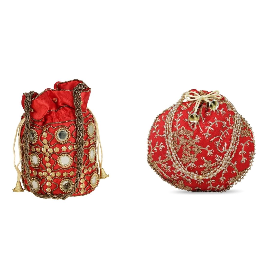 Home W_Bags Potlis PK 2 Combo – Designer Embroidered Potli Bag – Red & Red