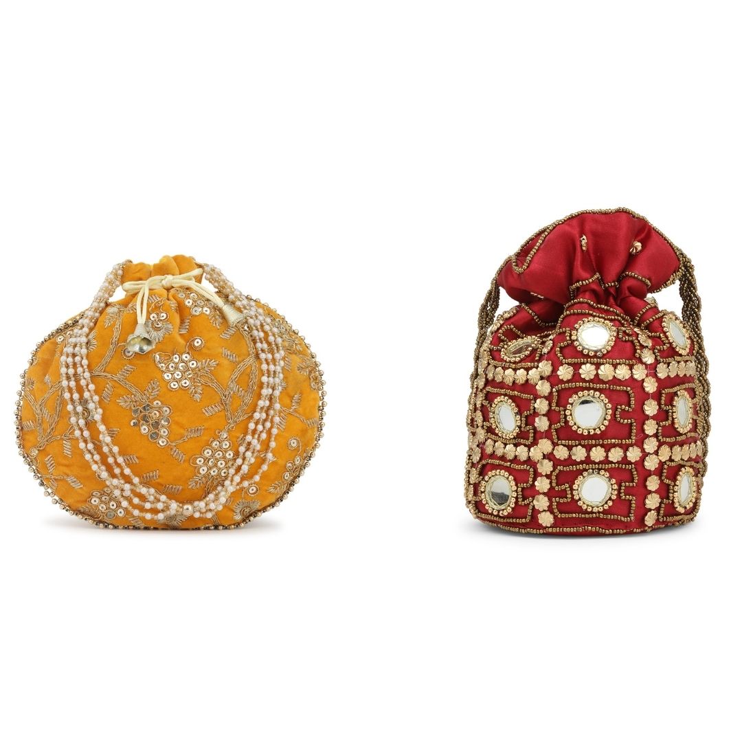 Combo – Designer Embroidered Potli Bag – Yellow & Maroon