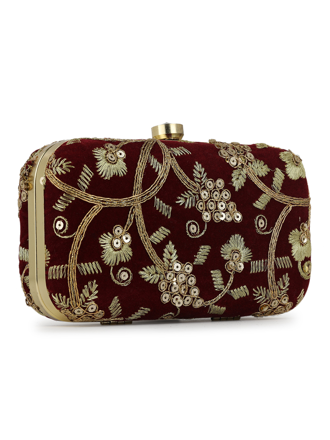 Combo Of Boho Bag And Maroon Embroidered Box Clutch For Girls and womens