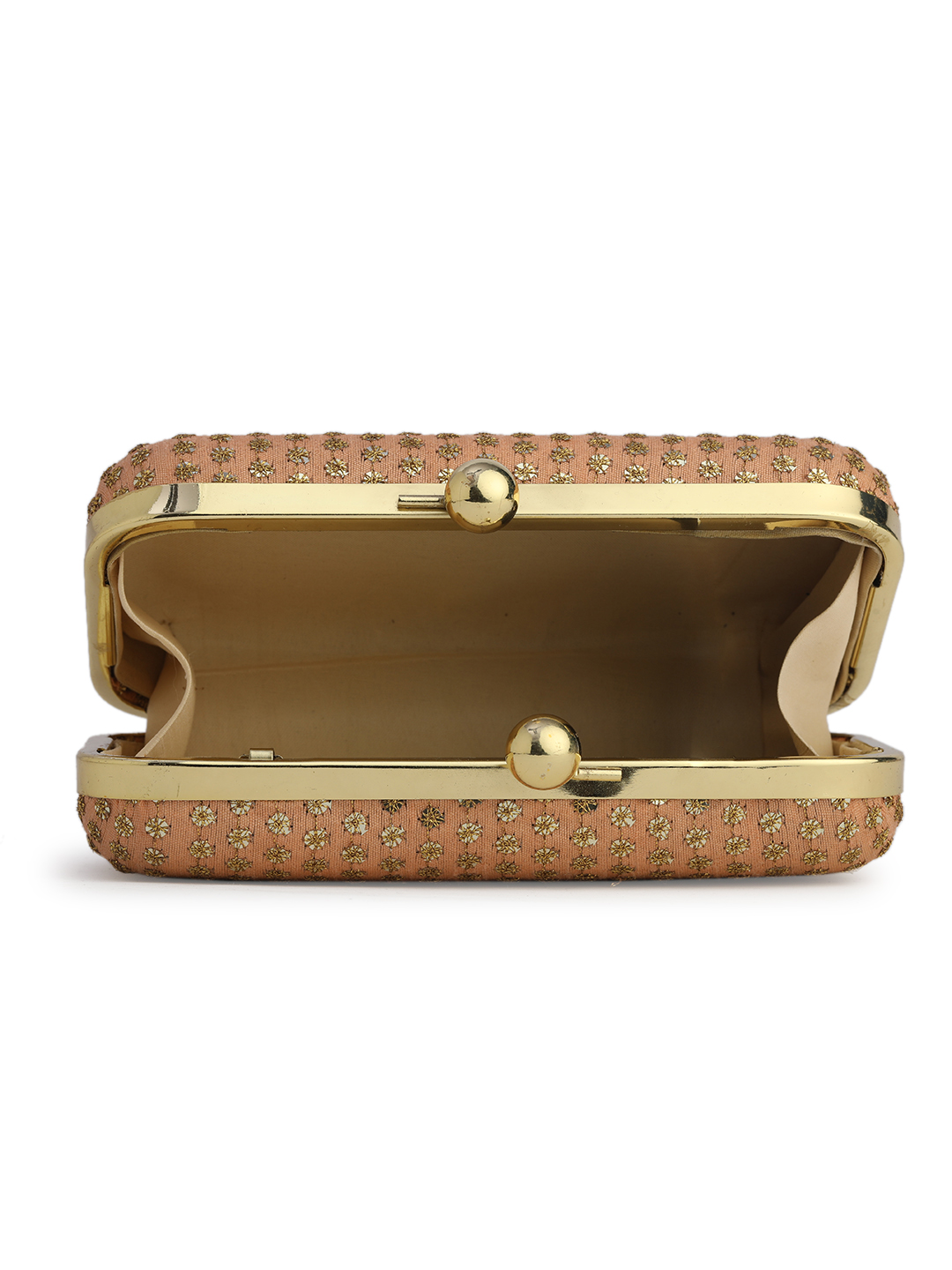 Combo Of Boho Bag And Peach & Gold Embroidered Box Clutches For Girls and womens