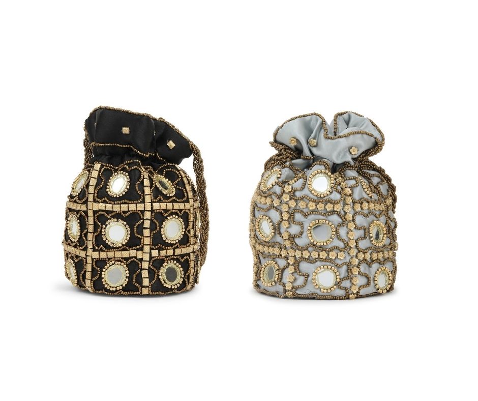 Home W_Bags Potlis PK 2 Combo of White & Black Color Designer Embroidered Potli Bag