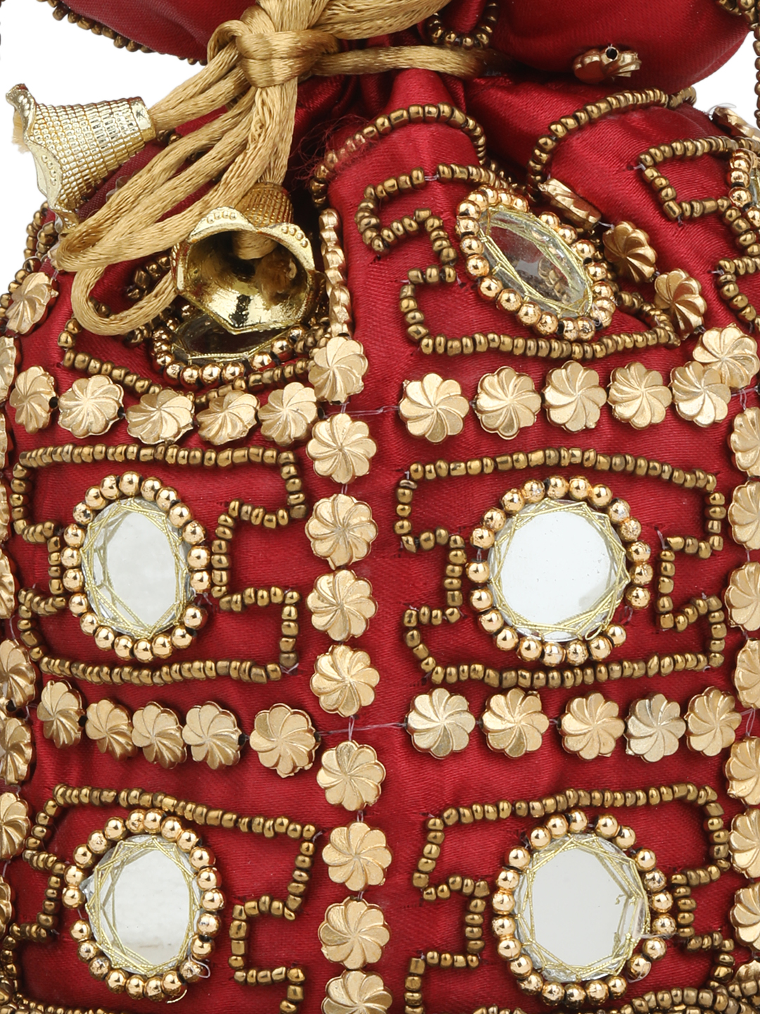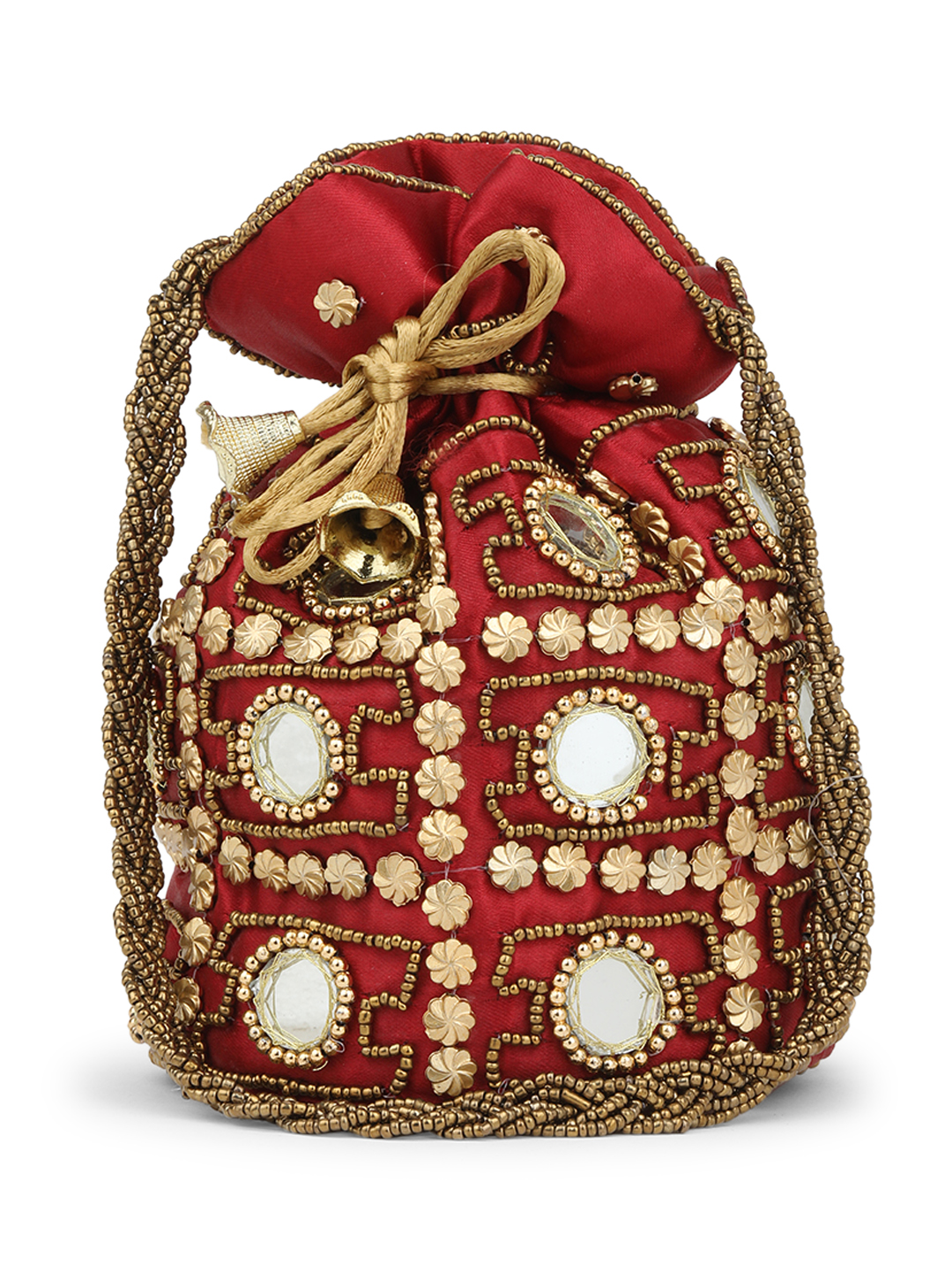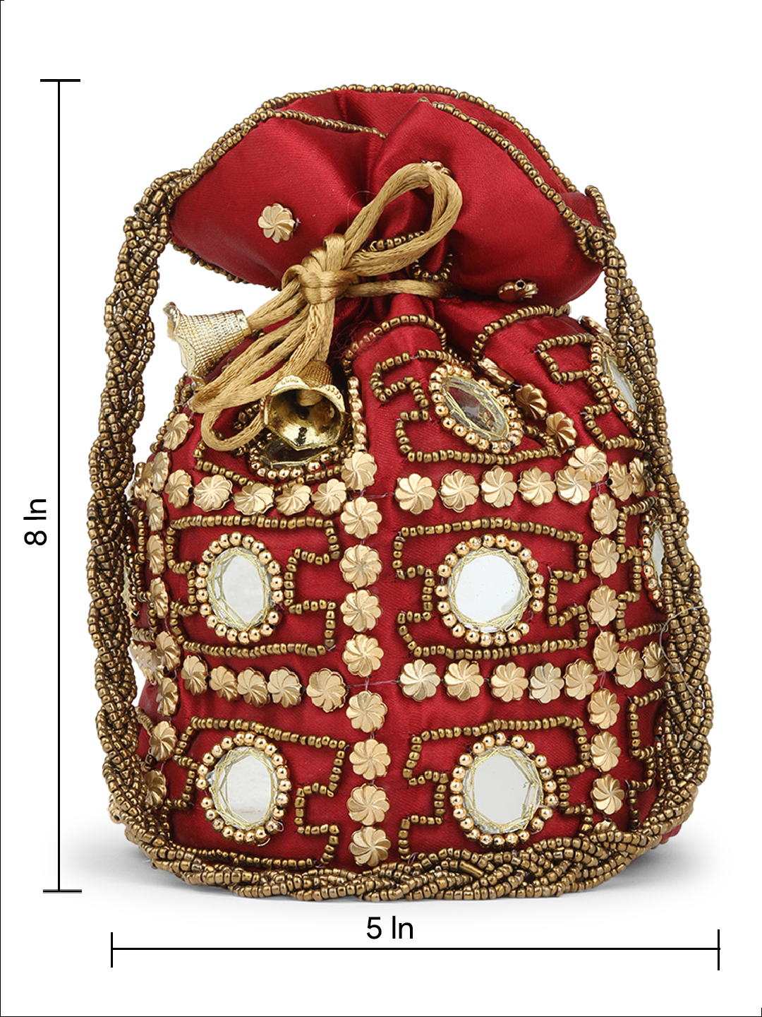 This product is a combo of tow Embellished potli bags having wrist loop 1 main compartment each with drawstring closure. Size & Fit Size of each potli bag : 9 x 9 x 3 Inch (Length x Width x Depth ) Material & Care Fabric Wipe with clean, dry cloth