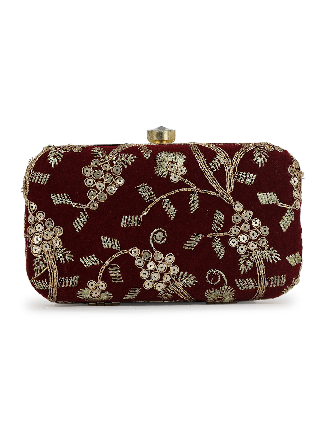 Home W_Bags Clutches Maroon Embroidered Box Clutch For Girls and womens