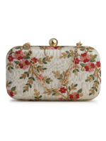 Off White & Gold Embroidered Box clutches, Has gold chain shoulder strap, 1 main compartment with twist closure