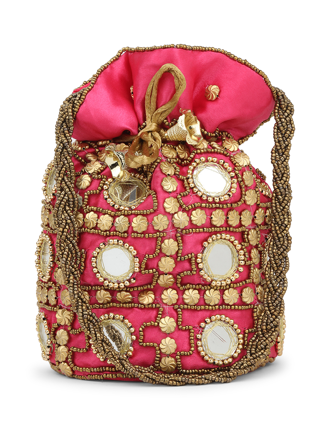 Combo – Designer Embroidered Potli Bag – Golden & Pink